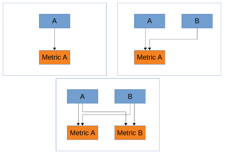 A라는 서버에서 발생한 메시지들을 가져와 메트릭 데이터를 만드는 시스템이 있다고 가정해보겠습니다. 그러면 첫 번째 그림처럼 간단하게 네트워크를 통해 메세지를 가져올 수 있습니다. 하지만 두번 째 그림처럼 B라는 서버가 추가되었고 동일한 메트릭을 만드는 시스템이라면 서버 B와의 연결을 새로 만들어야 합니다. 그런 다음 어떠한 사정에 의해서 새로 추가된 메트릭 정보가 필요해졌습니다. 그러면 메트릭 A는 A와 B로부터 데이터를 받고 메트릭 B 역시도 A와 B로부터 데이터를 받아야 합니다. 이러한 구조는 확장되면 확장될 수록 엄청나게 복잡해지겠지요? 이러한 복잡도를 해결하기 위해 Pub-Sub시스템을 이용해볼까요? 서버 A와 B는 중간에 메트릭 Publisher를 관리해 주는 시스템과 연결을 합니다. 그리고 메트릭 데이터를 처리하는 Metric A와 Metric B는 Subscribe을 중간 시스템에 등록하게 합니다. 이렇게 Publish-Subscribe 시스템을 만들면 다음 그림과 같이 훨씬 간단한 구조로 시스템을 구성할 수 있게 됩니다.