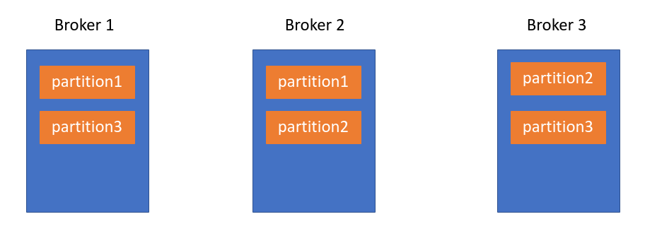 하나의 파티션은 하나의 브로커 노드의 디스크에 저장되어 지게 됩니다. 하지만 해당 브로커에 문제가 발생하게 된다면 어떻게 될까요? 데이터를 잃어버릴 수 있는 문제가 발생하게 됩니다. 이런 것을 방지하게 위해 카프카는 레플리케이션 기능을 활용하고 있습니다. 즉, 동일한 파티션을 여러 개 복제하는 것입니다. 카프카는 안전한 데이터 보존을 위해 토픽을 생성할 때 replicaiton-factor 설정을 3으로 할 것을 권장하고 있습니다. 이는 동일한 파티션이 3개가 존재한다는 뜻과 같습니다. 하나의 레플리카(replica)는 하나의 브로커에만 존재할 수 있습니다. 동일한 브로커에 2개의 레플리카가 존재할 수가 없습니다. 만약 브로커의 숫자가 레플리카들을 할당하기에 충분하지 않다면 토픽은 생성되어지지 않습니다. 위의 브로커 설명에서 브로커의 숫자가 3개 일 것을 권장한다는 이유가 바로 이것 입니다.