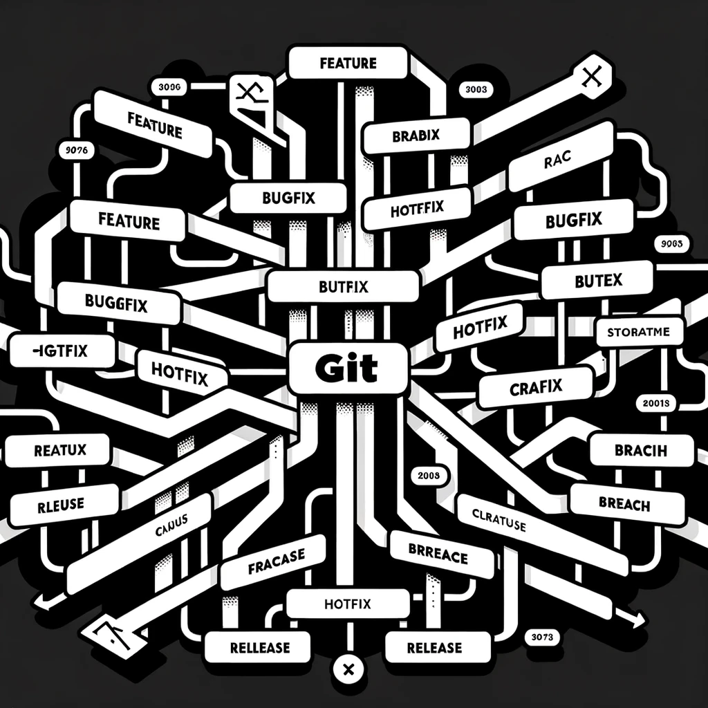 Git Flow는 2010년 Vincent Driessen이 "성공적인 Git 분기 모델"이라는 블로그 게시물을 발표한 후 인기를 얻은 분기 전략입니다. Git Flow는 Main, Develop, 그리고 Supporting 브랜치의 세 가지 주요 유형으로 브랜치를 분류하며, 후자는 Feature, Release, 그리고 Hotfix 브랜치로 더 세분화됩니다. Main과 Develop 브랜치는 개발 과정 내내 유지되며, Supporting 브랜치는 필요에 따라 생성되었다가 그 역할이 완료되면 삭제됩니다. 이를 통해 팀 내 병렬 작업 흐름이 가능합니다. 각 유형을 자세히 살펴보겠습니다: