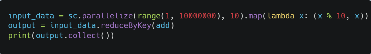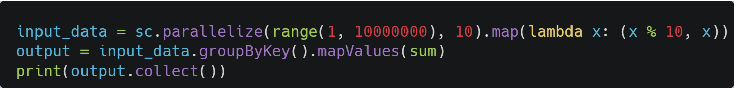 'groupByKey'와 'reduceByKey'의 성능을 비교하는 예는 다음과 같습니다: