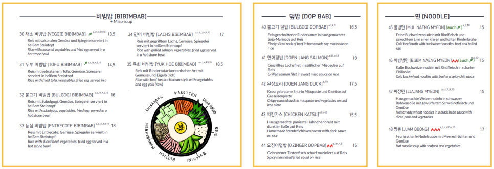 베를린은 한식당이 많아요 정말 많아요. 퓨전 한식까지 합하면 백여 개가 넘어갈 겁니다. 한국의 K-컬처가 전 세계로 퍼져나가며 한식도 함께 정말 많이 퍼져나갔지요. 베를린에는 이전부터 한식당이 많이 있었지만 최근에는 핫도그부터 파인 다이닝 레스토랑까지 정말 다양한 한식당들이 많아졌습니다.