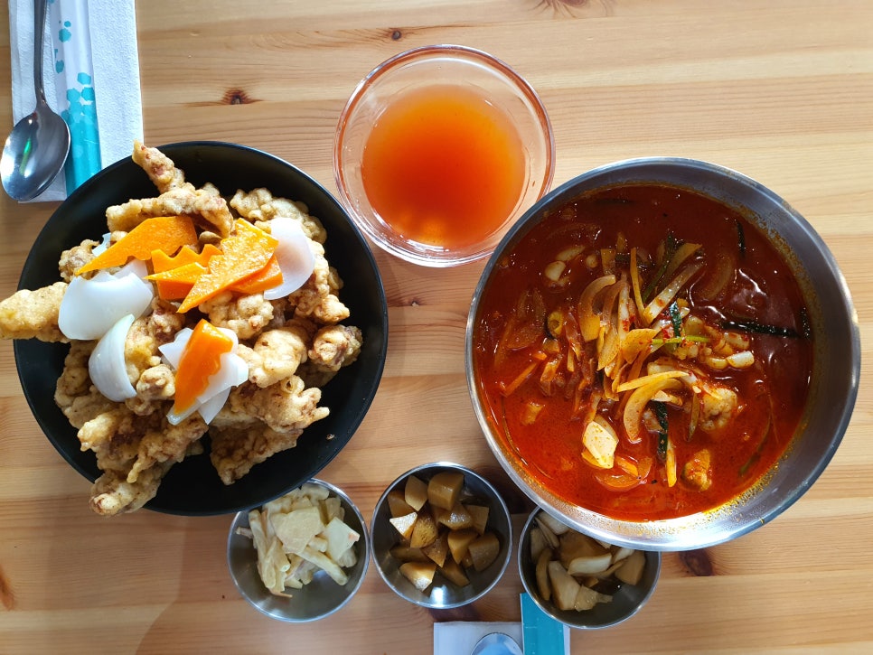 한식당인데 술 얘기만 할 수는 없지요. 이곳 아지트는 음식들이 맛있기로 소문이 나있는 맛집입니다. 그중에서도 사람들이 가장 추천하는 메뉴는 탕수육과 짬뽕이었습니다. 많은 사람들이 리뷰로 너무나도 극찬을 했기에 저희도 한 번 탕수육과 짬뽕을 시켜봤습니다.