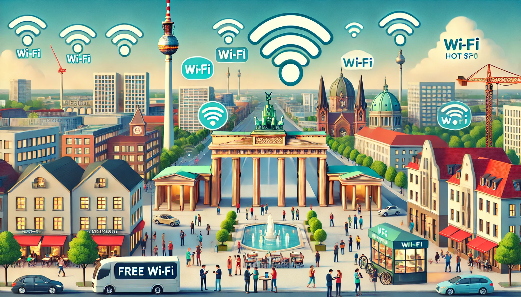 베를린 시는 또한 시민들이 설립한 프라이푼크-이니셔티브(Freifunk-Initiative)를 지원하며, 무료로 모두에게 공공 와이파이를 제공합니다. 현재 프라이푼크 네트워크는 기술 박물관이나 박물관 섬 등 베를린 내 1000개 이상의 공공 접근 가능한 와이파이 핫스팟을 유지하고 있습니다.