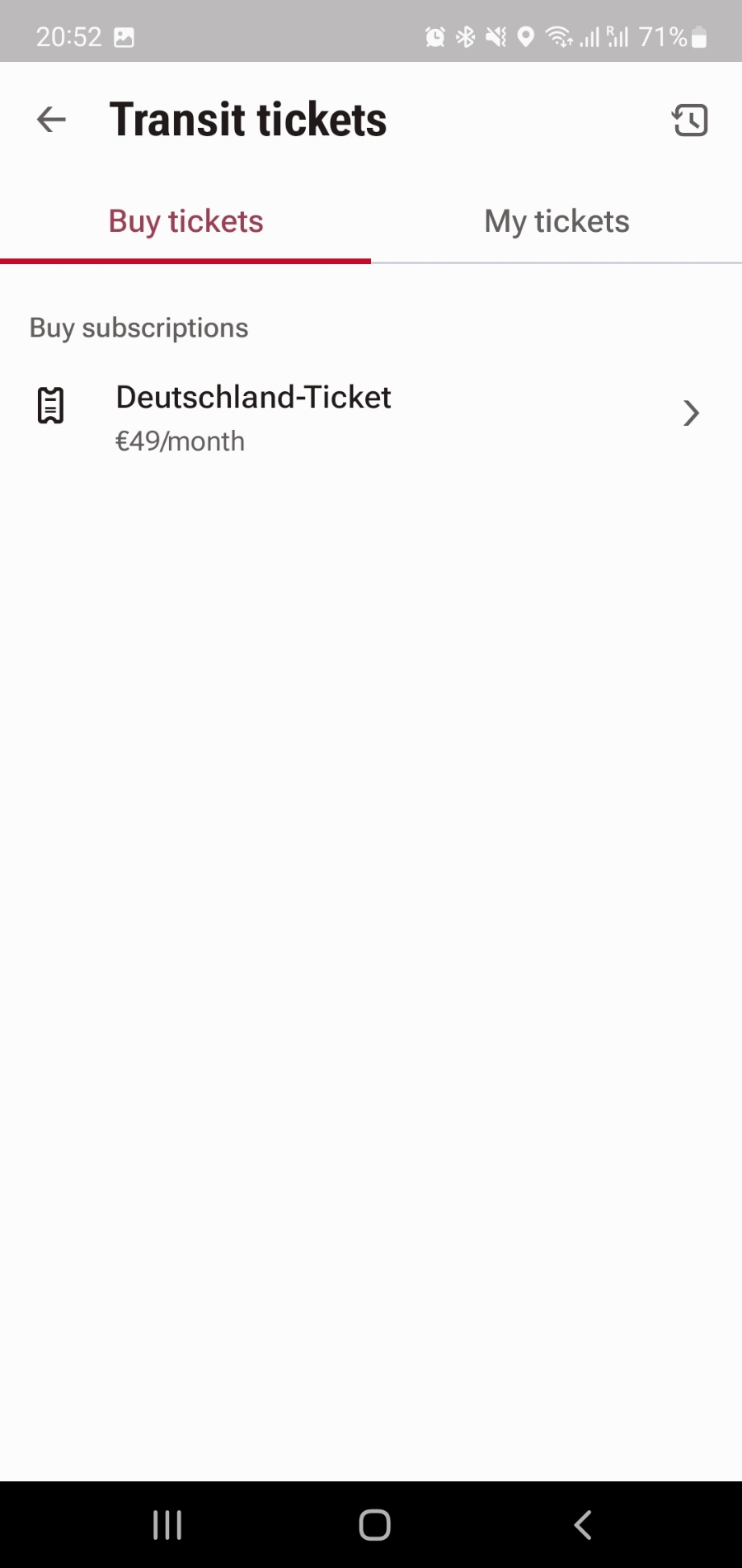 메뉴들을 보시면 아래에 크게 Deutscland-Ticket 광고가 보일겁니다. 여기서 Buy now를 선택하시면 됩니다.
