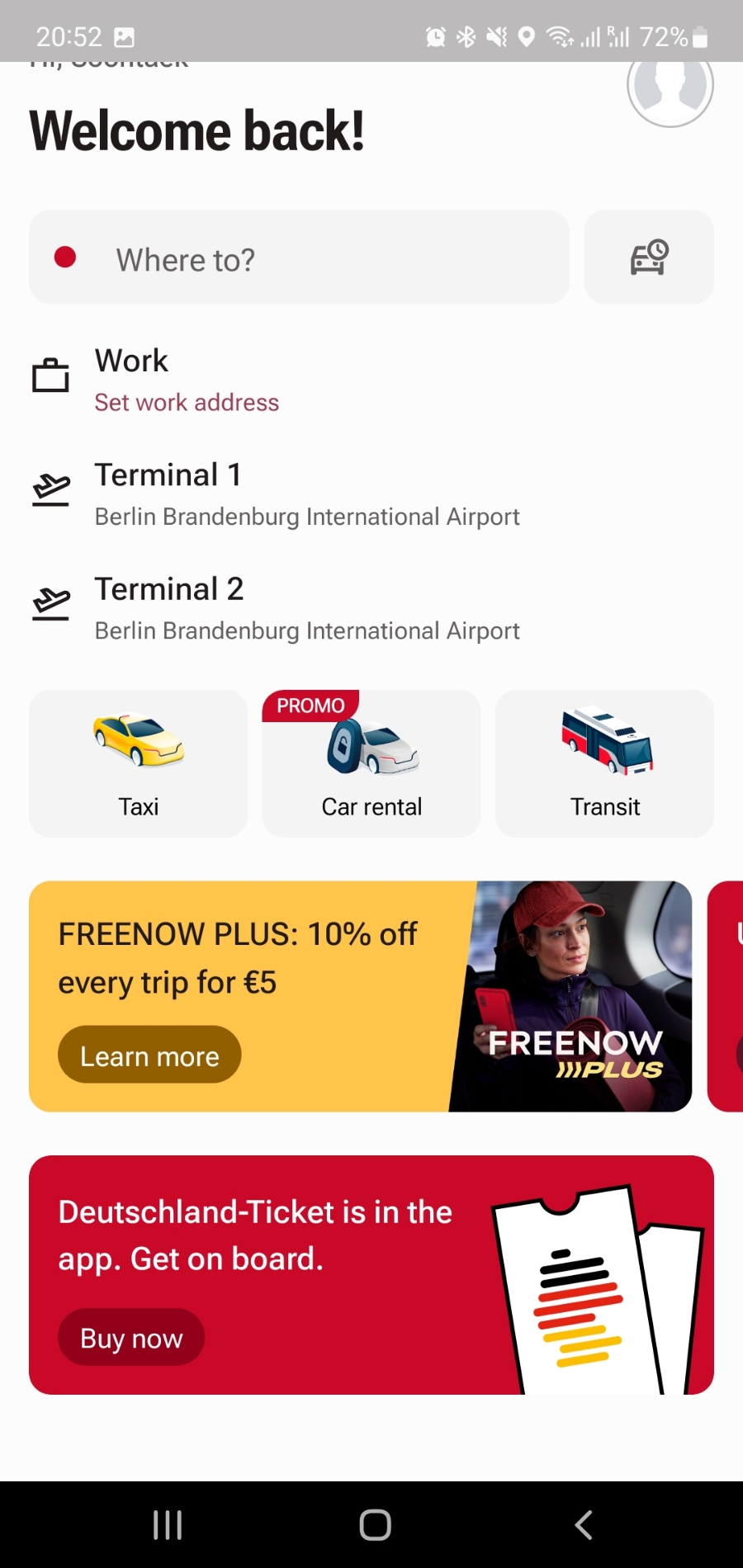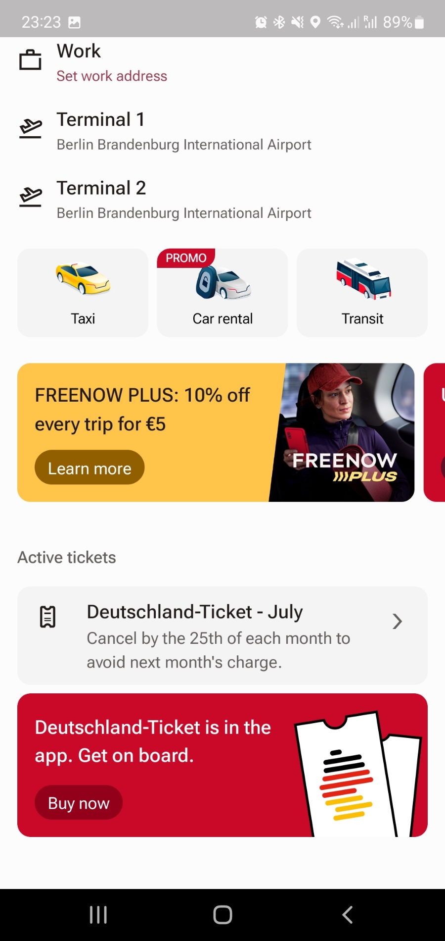 FREENOW는 독일 함부르크에 본사를 둔 모빌리티 서비스 제공업체입니다. 택시호출, 카쉐어링, 전동 스쿠터,대중교통 승차권 등 다양향 모빌리티 서비스를 하나의 앱으로 이용을 할 수 있게 만들어 줍니다. 이 앱에서 도이칠란드 티켓 역시 판매하고 있습니다.