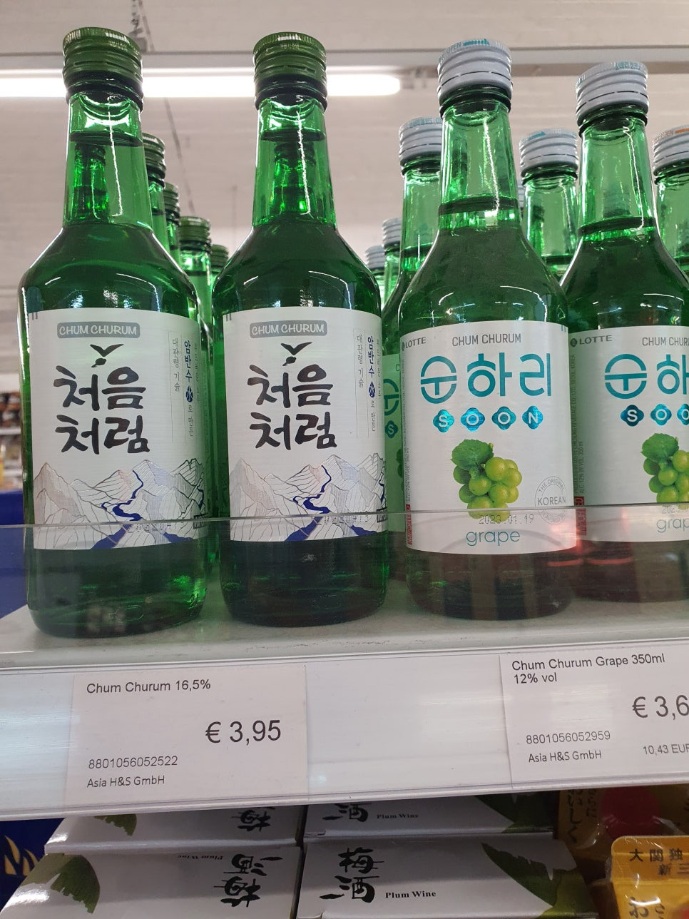 입구에 들어서면 제일 먼저 보이는 게 주류입니다. 여려 종류의 소주와 막걸리들이 있지요. 처음처럼 가격은 3.95유로네요. 사실 독일에 와서 소주는 잘 안 마시게 되어 소주 가격이 얼마나 오른 건지는 잘 모르겠습니다.