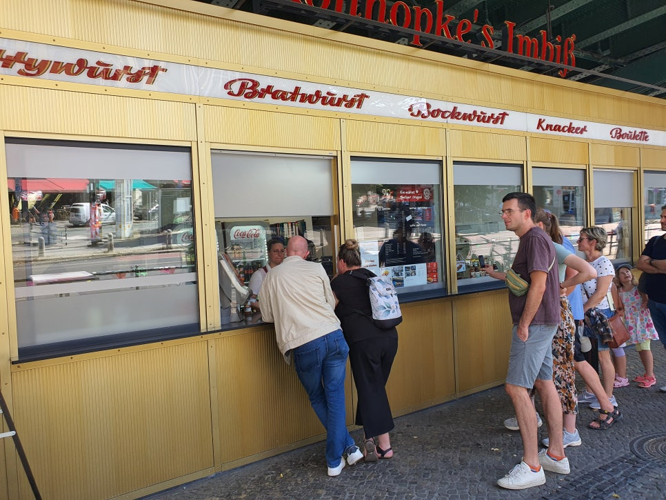 현재는 그의 딸이 운영을 하고 있고요. 이곳 커리부어스트는 베를리너들에게 맛집으로 소문이 나서 항상 줄이 길게 서 있습니다. 지하철 U2 에버스발더 슈트라세역(Eberswalder Straße) 에서 내려서 나오면 길 건너에사람들이 줄을 서있는 모습이 바로 보입니다.