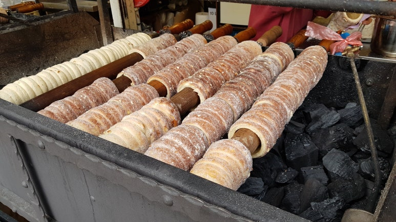 크리스마스 마켓에서 가장 즐거운 것 중 하나는 다양한 전통 음식을 맛보는 것입니다. 프라하의 마켓에서는 '트르들로(Trdelník)'라는 전통적인 굴뚝빵을 꼭 맛보세요. 바삭한 겉과 부드러운 속이 일품이며, 계피와 설탕이 듬뿍 뿌려진 이 빵은 추운 겨울날 따뜻한 커피나 '뱅쇼(Vánoční punč)'와 함께 먹으면 정말 좋습니다.