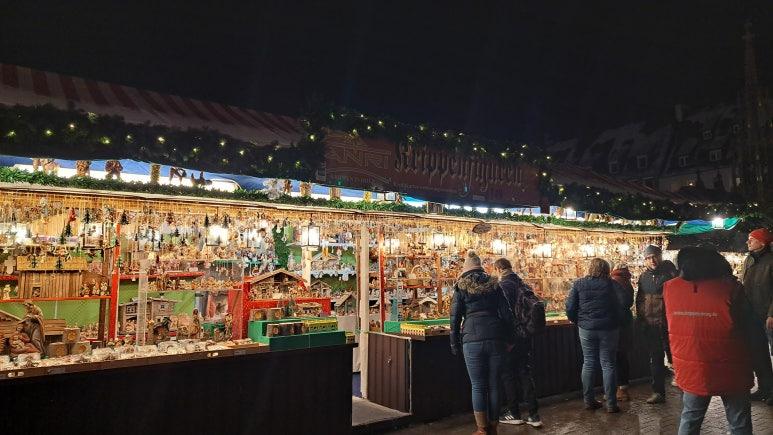 크리스마스 마켓에서는 맛있는 음식이 빠질 수 없죠. 뉘른베르크 마켓에서는 특히 뉘른베르크 소시지가 유명한데요, 이 작은 소시지는 정말 맛있어요! 또, 추운 날씨에 꼭 필요한 따뜻한 음료, 글뤼바인도 여기에서 맛볼 수 있어요. 따뜻한 와인에 향신료와 과일이 더해진 글뤼바인은 몸을 녹여주는 최고의 음료예요. 진저브레드 쿠키나 슈톨렌 같은 크리스마스 디저트도 놓치지 마세요.