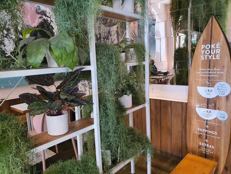 실내 인테리어는 하와이의 분위기를 살리기 위해 장식을 잘 해놨어요. 여기 레스토랑은 테이블이 많지가 않아요. 그래서 포장해가시는 분들도 많아요. 근처에 공원(Monbijoupark)도 있고 슈프레(Spree) 강가에 앉아서 먹기도 참 좋아요. 실내에 자리가 없다면 포장해가시는 것도 추천드려요.