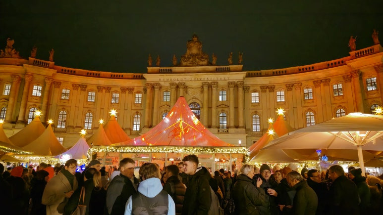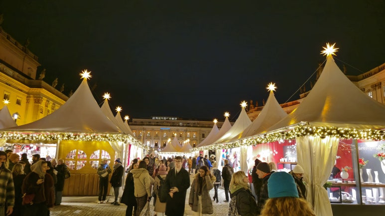 Babelplatz에서 열리는 크리스마스 마켓은 독일 특유의 따뜻한 분위기와 풍성한 먹거리, 다양한 상품들로 가득 차 있어요. 특별한 점은 이 마켓은 입장료가 2유로라는 점입니다. 이 입장료는 마켓의 높은 퀄리티 유지와 문화 프로그램 지원에 사용된다고 해요. 평일(월~금) 오후 2시까지는 입장료가 무료입니다!! 그래도 크리스마스 마켓은 어두울 때가 가장 아름답기에 해가 진 이후에 방문하시길 추천드려요!