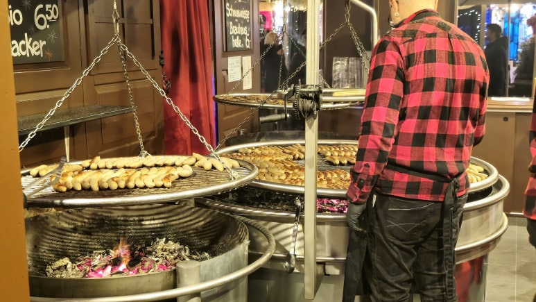 Gendarmenmarkt 크리스마스 마켓에서는 감자와 라끌렛 치즈뿐만 아니라 갓 구운 빵과 소시지도 즐길 수 있어요. 🥖🌭