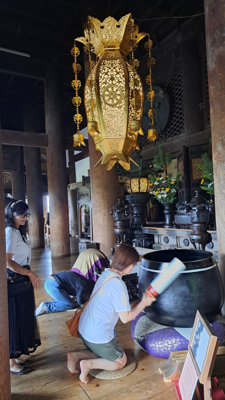 청수사의 보문각(도도로키몬)을 지나 본당에 다다르면, 소원을 기원하며 향을 피우고 절을 드리는 사람들을 쉽게 만나보실 수 있습니다. 이곳에서는 누구나 가볍게 향을 피워보고 마음속 소망을 빌어볼 수 있는 경험을 할 수 있지요. 또한 본당 안쪽에 지역 사케를 진열해둔 제단이 있어, 이를 보며 “한 해 동안 수확한 곡식으로 사케를 담가 봉헌하는 것”이라는 생각이 드실 수도 있습니다.
