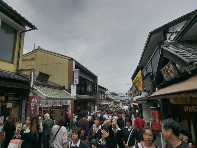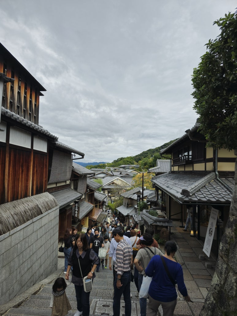 하지만 그 긴장감도 잠시, 내려가는 길 양쪽으로 늘어선 상점들이 흥미를 끌어 심심할 틈이 없었습니다. 전통 공예품, 달콤한 과자, 향긋한 차 등 다양한 물건을 구경하며 천천히 걷다 보니 어느새 야사카 신사에 도착했습니다. 여기서 더 나아가 기온 거리까지 둘러보면, 교토의 전통과 현대가 어우러진 풍경을 제대로 즐길 수 있습니다.