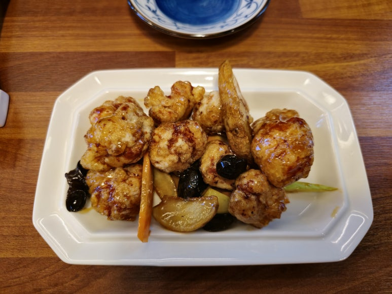 그리고 점심 메뉴로 있는 미니 탕수육이 있어 함께 시켜보았어요. 탕수육 양은 점심때 식사와 함께 먹기에 적당한 양이었습니다.