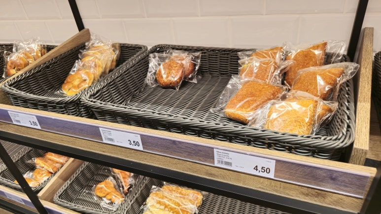 마트 안에는 특별한 베이커리 코너도 자리하고 있습니다. 이곳에서는 독일식 빵이 아닌, 한국에서 익숙한 빵과 케이크를 맛볼 수 있습니다. 부드러운 단팥빵, 크림빵부터 화려하고 촉촉한 케이크까지 다양하게 준비되어 있어, 한국의 베이커리를 그리워하는 분들에게 큰 만족을 선사합니다.
