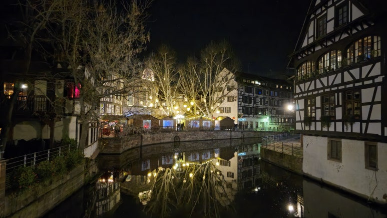 밤이 찾아오니 도시의 매력이 더욱 빛나기 시작했어요. 어둠 속에서 반짝이는 크리스마스 조명과 화려한 장식들이 도시를 마치 동화 속 한 장면처럼 만들어 주더라고요. 스트라스부르의 밤은 낮보다도 더 화려하고 아름답게 빛났답니다. 저절로 감탄이 나오는 풍경에, 이곳의 크리스마스 마켓이 ‘유럽 크리스마스의 수도’라고 불리는 이유를 알 것 같았어요.