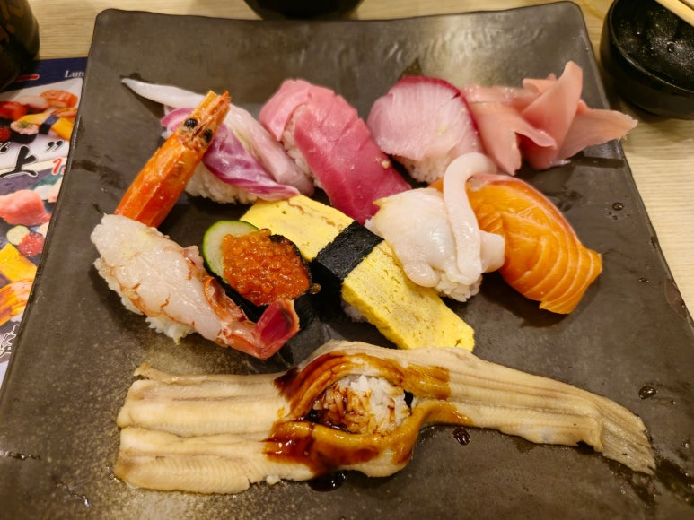오사카 우메다 우오신 초밥집은 여느 일식집처럼 오픈 주방을 갖추고 있어, 초밥을 만드는 과정을 바로 눈앞에서 볼 수 있었어요. 신선한 재료가 손놀림 하나로 멋진 스시로 탄생하는 모습은 그야말로 하나의 예술이었답니다. 오사카 초밥집답게 장인의 섬세한 손길과 숙련된 기술이 돋보였고, 그 정성 덕분에 한 점 한 점의 스시가 더욱 특별하게 느껴졌어요. 오사카에서만 경험할 수 있는 이런 생생한 초밥 퍼포먼스는 미식 여행의 큰 즐거움이었습니다.