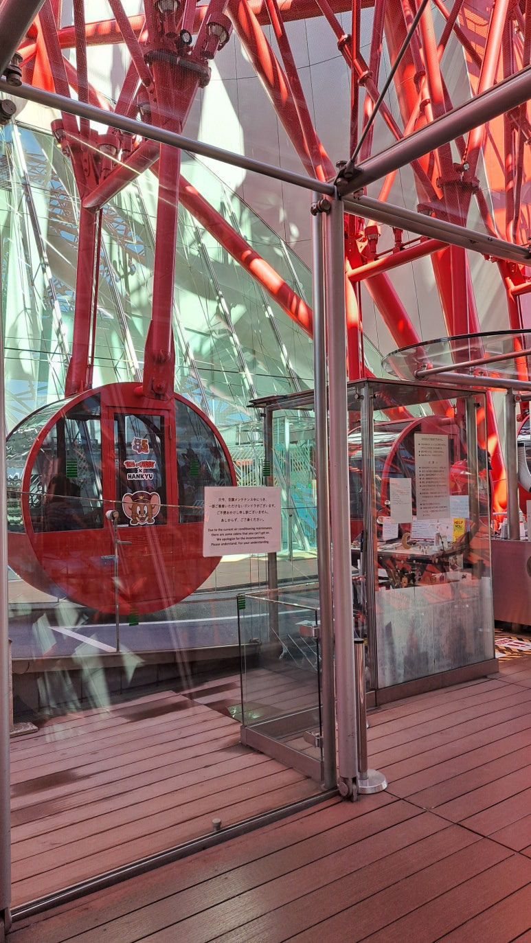 오사카 우메다의 헵파이브(HEP FIVE) 쇼핑몰에서 대관람차를 타기 위해 엘리베이터를 타고 탑승장까지 한 번에 올라갔습니다. 빨간 철골 구조물이 멋지게 장식된 탑승장은 시선을 사로잡았고, 평일 오전이라 그런지 한산한 분위기 속에서 여유롭게 대관람차에 오를 수 있었습니다. 저녁 노을이 질 무렵이면 아름다운 석양과 함께 오사카 야경을 보려는 사람들로 긴 대기줄이 생길 것 같았습니다. 헵파이브 대관람차는 낮에는 오사카 도심의 활기찬 풍경을, 저녁에는 로맨틱한 노을과 야경을 선사해 언제 방문해도 특별한 경험을 제공합니다. 오사카 여행 중이라면 헵파이브에서 시간대별로 색다른 오사카의 매력을 즐겨 보세요!