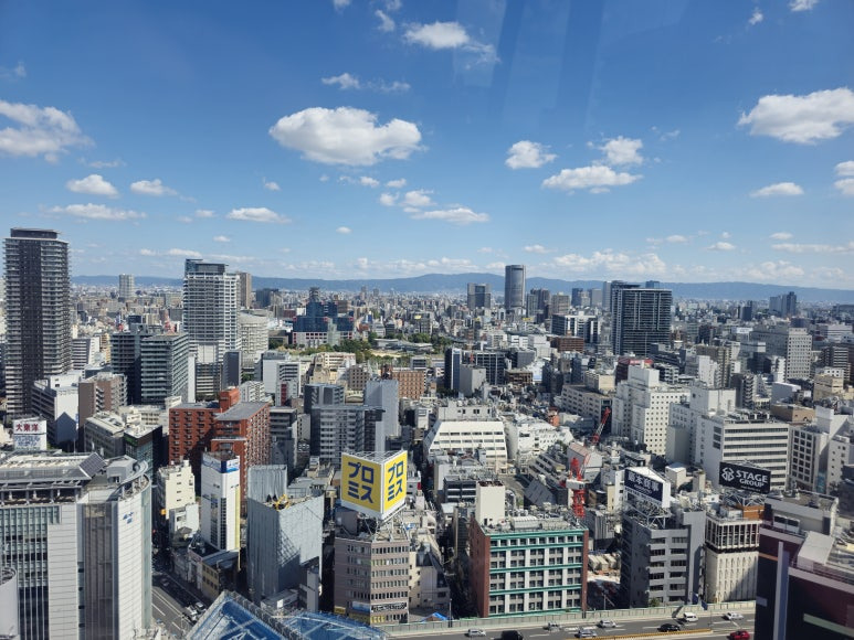 높이 올라갈수록 펼쳐지는 오사카 시내 전경은 그야말로 장관이었습니다. 고층 빌딩 숲 사이로 빛나는 도심 풍경은 유럽에서 보던 도시 전경과는 전혀 다른 감성을 선사했습니다. 오사카만의 활기와 세련된 도시 풍경이 어우러져 잊지 못할 경험으로 남았습니다. 특히, 저녁 노을이 지는 시간대에는 더욱 많은 사람들이 이 황홀한 전망을 즐기기 위해 모일 것 같습니다. 오사카 여행 중이라면, 헵파이브 대관람차에서 색다른 오사카의 매력을 꼭 느껴 보세요!