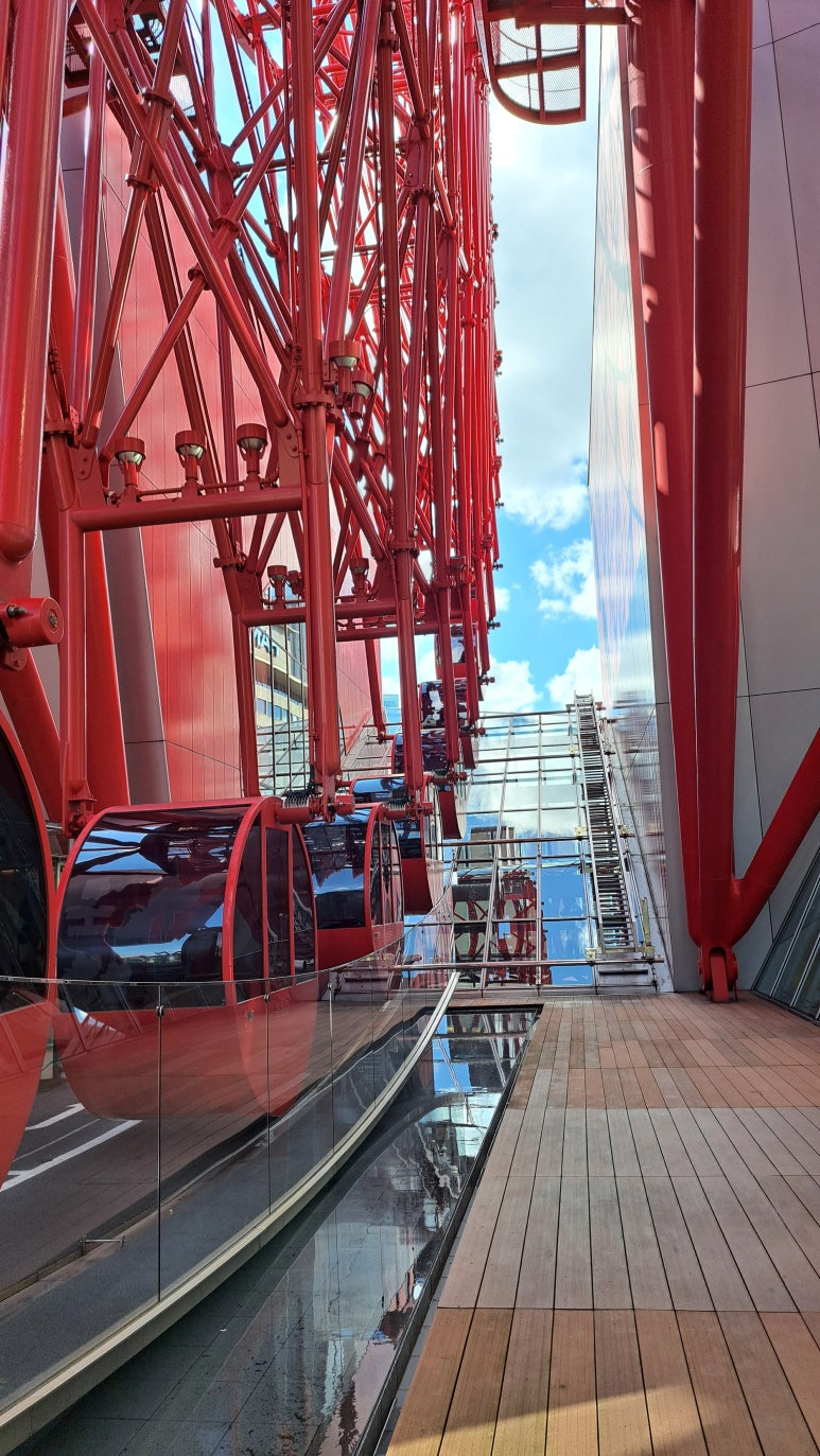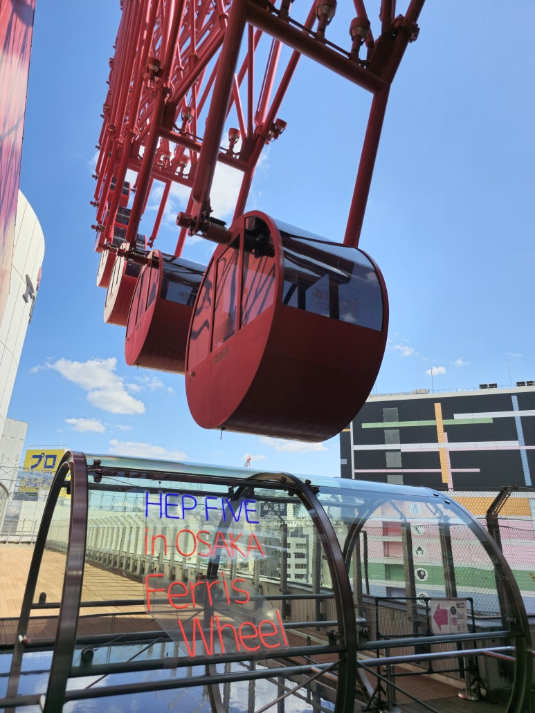 오사카 우메다에 위치한 헵파이브(HEP FIVE) 쇼핑몰은 쇼핑뿐 아니라 대관람차로도 유명한 명소입니다. 헵파이브 쇼핑몰에 들어서서 엘리베이터를 타고 탑승장까지 한 번에 올라갔는데, 대관람차로 향하는 길은 빨간 철골 구조물로 장식되어 있어 인상적인 풍경을 자아냈습니다. 헵파이브의 빨간 대관람차는 쇼핑몰 건물 위에 설치된 독특한 구조 덕분에 더욱 특별하게 느껴졌습니다. 오사카의 도심을 배경으로 우뚝 선 이 대관람차는 헵파이브를 방문한 사람들에게 잊지 못할 추억을 선사합니다. 오사카 여행 중이라면 헵파이브에서 쇼핑과 함께 이 멋진 대관람차 체험을 꼭 즐겨 보세요!