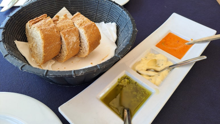 해산물을 좋아하는 저희 부부는 해변 산책로를 걷다가 마음에 드는 곳을 발견해 들어갔습니다. 바로 'Restaurante Sal Negra'라는 레스토랑이었습니다. 식전 빵과 함께 제공된 지역 특산 모호(mojo) 소스는 정말 맛있었습니다. 특히 테네리페에서는 모호 소스가 모든 식당마다 조금씩 다르게 나오기 때문에 이것저것 비교해보는 재미도 있습니다. 메인 메뉴로는 해산물 빠에야를 주문했습니다. 여기서 주의할 점은, 빠에야 메뉴가 여러 가지 종류로 나뉘어 있기 때문에 우리가 일반적으로 생각하는 빠에야를 먹고 싶다면 발렌시아 스타일 빠에야를 주문해야 한다는 것입니다. 또한 주문할 때 소금을 적게 넣어 달라고 요청하는 게 좋습니다. 음식 맛은 환상적이었지만, 해변가 위치라 가격대가 약간 높은 편이었습니다. 음료와 빠에야를 포함해 두 사람 식사가 약 60유로 정도 나왔는데, 품질과 뷰를 고려하면 충분히 납득할 만한 수준이었습니다.