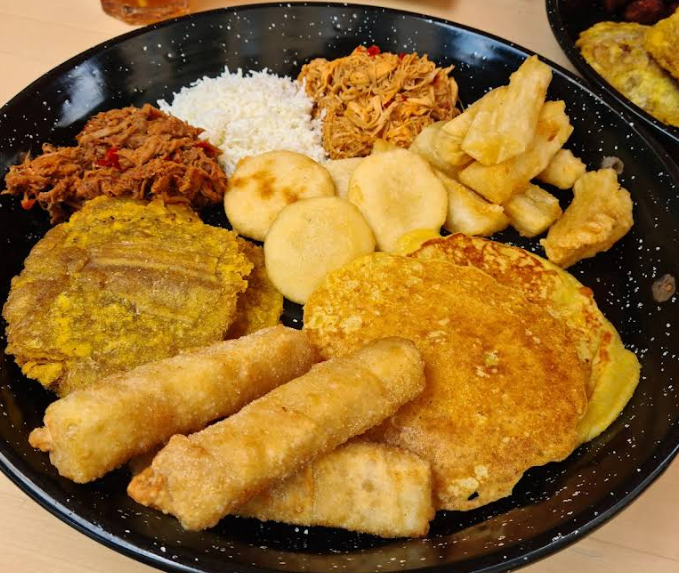 그리고 다양한 음식이 담긴 플레이트도 주문했습니다. 테네리페는 바나나로 유명한 섬이에요. 바나나를 튀겨 먹기도 하는데, 역시 맛있었어요. 옥수수가루로 만든 아레파뿐 아니라 팬케이크처럼 생긴 '카차파(Cachapa)'도 있었는데, 고소하면서도 달콤한 맛이 매력적이었어요.