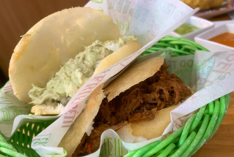 우선 점심시간이 되어 식사를 하러 갔어요. 우리가 간 식당은 '아레파(Arepa)'라는 옥수수 빵 사이에 다양한 속 재료를 넣은 음식을 판매하는 곳이었어요. 아레파는 베네수엘라를 비롯한 중남미 지역의 대표적인 음식 중 하나인데, 테네리페는 중남미와 교류가 많아서 그런지 이런 음식을 쉽게 접할 수 있어요. 풀드포크가 들어간 아레파를 시켰는데, 고소한 빵과 짭조름한 고기의 조화가 정말 맛있었어요.