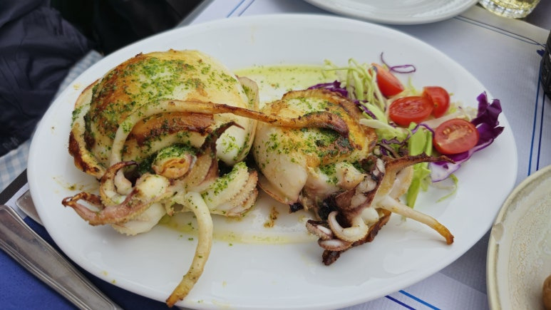 함께 시켰던 오징어 구이도 너무나도 맛있었지요. 그리고 테네리페 어느 식당에 가나 만날 수 있는 파파스 아루가다스(Papas arrugadas)를 모호 소스와 함께 시켰지요. 파파스 아루가다스는 소금물에 삶은 감자예요. 우리 강원도 알감자와 비슷한 맛을 가진 감자예요. 모호 소스와 정말 잘 어울린답니다. 이거에 반해서 집에서도 모호 소스를 직접 만들어 감자와 함께 먹고 있어요. 테네리페에 방문하시면 꼭 모호 소스랑 함께 감자를 시켜서 드셔보세요.