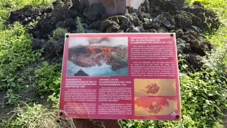 이곳 전망대로 올라가는 길 한편에는 공원과 기념비가 조성되어 있었어요. 1706년에 테네리페에서 화산이 폭발해 용암이 마을 한쪽을 덮쳐서 바다로 흘러내렸었다 합니다. 그때를 추모하기 위해 비석을 세우고 작은 공원을 조성해 놨습니다.