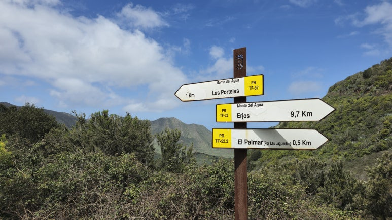 테네리페 온에서 확인을 하면 트레일의 번호와 함께 경로를 지도로 표시해 줍니다. 표지판에서도 트레일 번호와 함께 안내를 잘 해주기 때문에 길 찾기가 쉬워요. 그리고 등산로 관리도 잘 되어 있었어요. 테이데 산 위에서는 사막과 비슷한 황량한 풍경을 보여줬었는데 이곳 등산로는 푸릇푸릇 한 모습을 보여주고 있었어요. 섬에서 정말 다양한 식생을 보여주는 게 참 신기하게 보였지요.