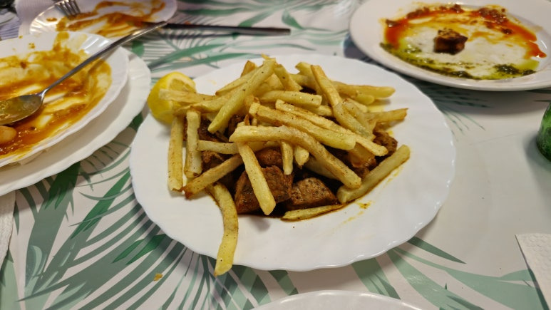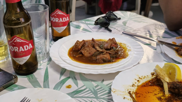 친구랑 이야기를 하다가 오징어 이야기가 나왔었는대요. 그래서 Potas en salsa를 시켜봤었어요. 지중해에서 먹던 오징어와 달리 우리가 늘 먹어왔던 오징어와 동일한 식감을 가진 오징어였어요. 그리고 소스가...먹어보고 깜짝 놀랐었습니다. 처음 음식이 나올 때부터 냄새가 너무나도 익숙한 냄새였습니다. 그리고 맛을 딱 보는 순간 시골에서 먹던 오징어 볶음의 맛이였어요. 요즘 식당에서 먹던 빨간 오징어 볶음이 아니라 시골에서 할머니가 해주시던 그 오징어의 맛이였어요. 식당 주인한테 이 얘기를 하니 너무나도 놀라워 하더군요.