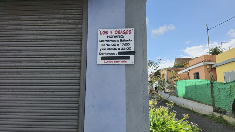 친구가 안내해준 식당은 간판도 안보이고 대체 어떻게 사람들이 이런 곳을 찾아올까 의문인 곳이였어요. 친구말로는 고속도로 주변에 이런식으로 가정집 같은 곳에 식당들이 많이 있다고 해요. 진짜 로컬들 아니면 찾아가지도 못할만한 식당이였어요. 식당 이름은 Los 3 Dragos인데 Drago는 이 곳 테네리페에 많이 있는 나무의 한 종류예요. 식당 앞에는 이 나무 세 그루가 있었어요. 그래서 나오면서 이걸 보고 아... 이 식당 이름이 이래서... 라고 깨달아 버렸지요.