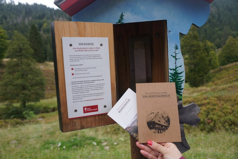 Hochschwarzwälder Wanderpass는 호흐슈바르츠발트 지역의 다양한 하이킹 코스를 탐방하며, 각 코스에 설치된 스탬프 포인트에서 도장을 수집하는 프로그램입니다. 이 스탬프 포인트는 전통적인 뻐꾸기시계 모양의 스탬프함으로 되어 있어, 독특한 경험을 선사합니다.