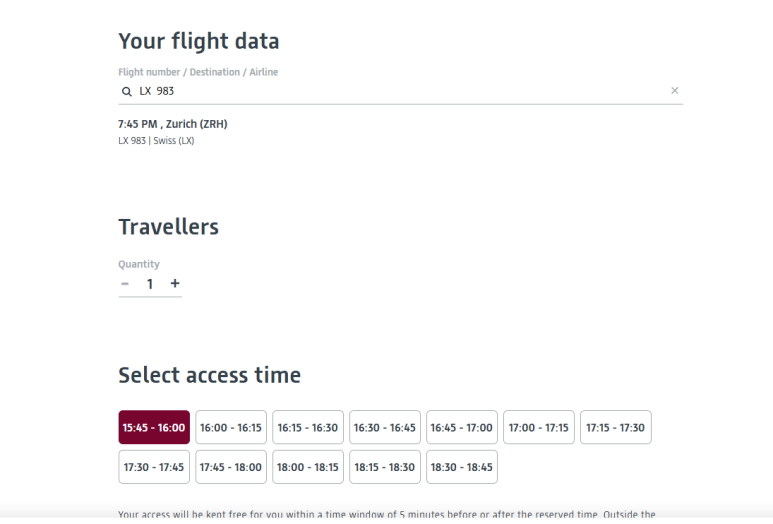 예약 시에는 정확한 정보(날짜, 항공편 번호, 이름)를 입력해야 자동 입장이 가능합니다.