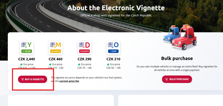 체코 고속도로용 전자 비넷(e-Vignette)은 공식 웹사이트에서 단 몇 분 안에 구매할 수 있습니다. 복잡한 절차 없이, 차량 번호판 등록만으로 끝! 아래 순서대로 따라 해보세요.