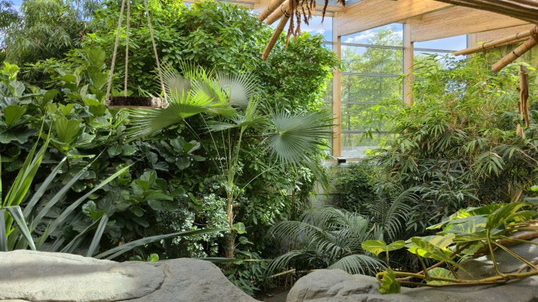베를린 동물원에서 가장 인상 깊었던 공간 중 하나는 단연 "Welt der Vögel(새들의 세계)"였습니다. 단순히 새장을 보는 것이 아니라, 마치 열대 우림이나 숲속을 거니는 듯한 느낌으로 조성된 이 공간은 정말 특별했어요.
