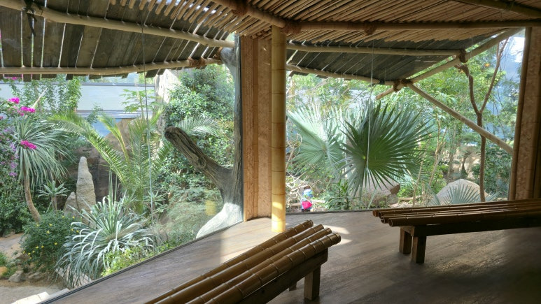 하지만 이번에는 반대로, 동물원 안에서 비키니 쇼핑몰을 바라보니 시점이 완전히 달라져 있더라고요. 숲속에 들어온 듯한 원숭이 구역 너머로 보이는 세련된 건물은 묘하게 이질적이면서도 도시와 자연이 공존하는 느낌이 들어 인상 깊었습니다.