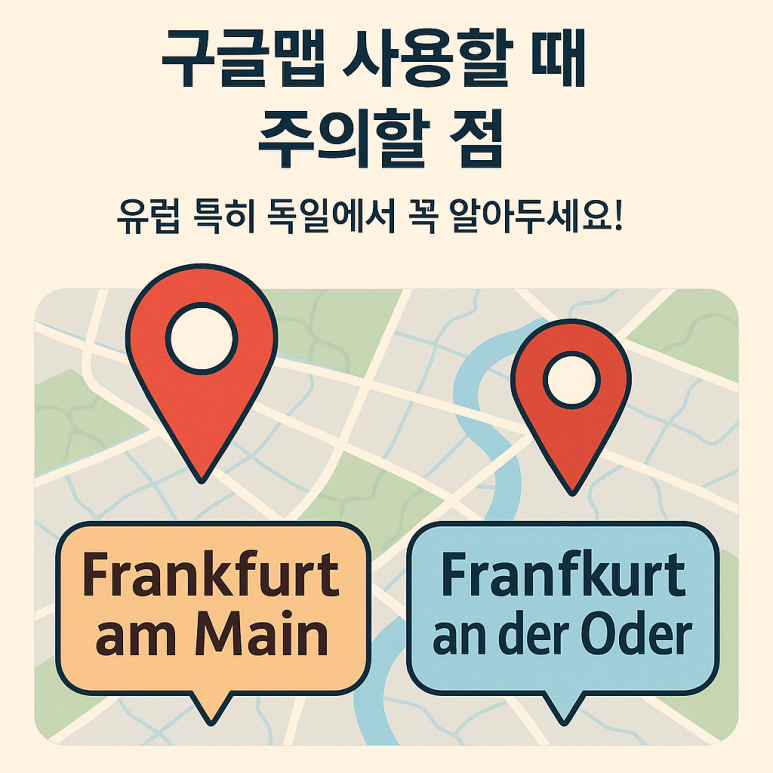 유럽 여행 시 구글맵은 길 찾기와 대중교통 이용에 있어 없어서는 안 될 최고의 도구입니다. 하지만 간혹 실수로 전혀 엉뚱한 곳으로 예약하거나 이동하는 경우가 있습니다. 그 이유 중 하나는 유럽, 특히 독일에 동일한 지명이 여러 개 존재하기 때문입니다. 이번 포스팅에서는 대표적인 예시들을 통해 구글맵 검색 시 주의할 점을 소개드립니다.