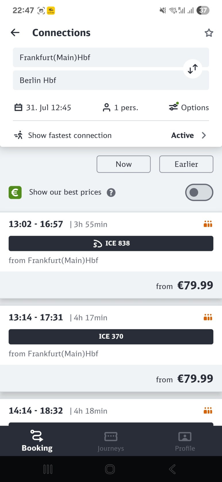- 예: From: Berlin Hbf / To: Munich Hbf