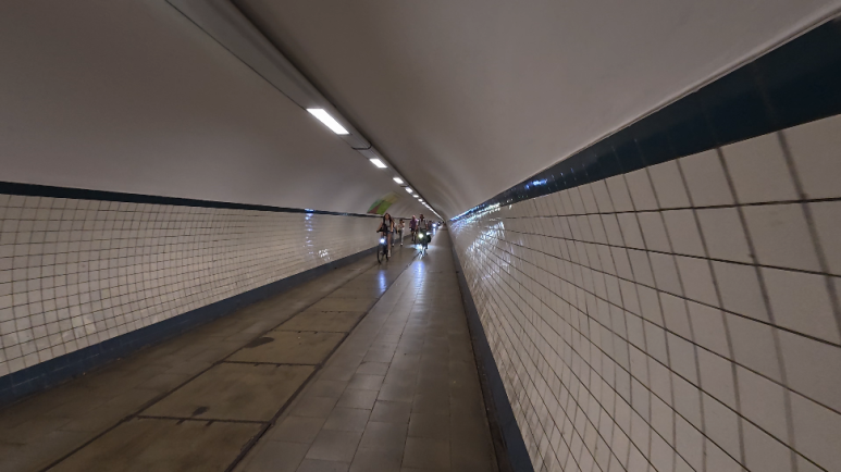 그 다음으로 무엇을 할까 생각하다가 강 밑으로 뚫려있는 터널로 가보기로 했어요. 앤트워프 앞의 강은 바다로 연결되기 바로 전인 하류라서 매우 폭이 넓은 스헬데강이 있는데요. 이 강 밑으로 터널(Sint-Annatunnel)이 있습니다. 옛날에는 엘리베이터를 통해 차량도 다녔었다고 합니다만 현재는 자전거와 도보로만 이용할 수가 있어요. 끝까지 걸어가봤는데 꽤 긴 길이였습니다. 함부르크에도 있던 터널과 너무나 비슷했어요.