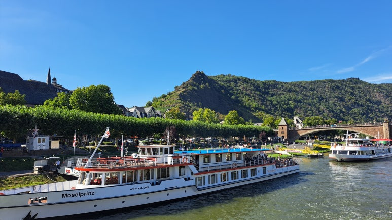 배도 든든하게 채웠고 맥주도 마셨으니 구경을 해야겠지요. 모젤강은 강변의 경치뿐만 아니라 강변가에 있는 마을들도 참으로 아름답습니다. 그리고 옛 로마시절부터 물류가 드나들던 곳이라서 강을 따라 성들이 많이 있지요. 또한 포도가 자라기 적절한 곳이여서 포도밭이 쭉 펼쳐져 있답니다. 이 강을 따라서 물류도 많이 움직이지만 유람선도 많이 다니고 있답니다. 가격도 그리 비싸지 않으니 한시간정도 코스로 다녀오기 딱 좋습니다.