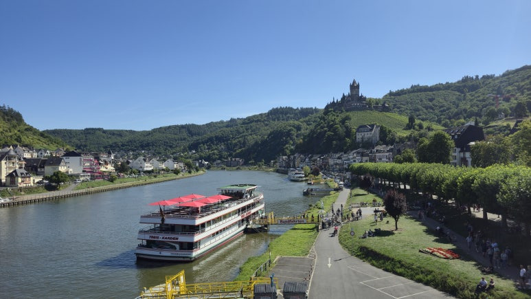 유람선을 타고 강에서 바라보는 코헴 성의 모습은 또 다른 색다른 모습을 보여주고 있었습니다. 강변의 아름다운 작은 마을들에는 펜션과 같은 많은 숙소들이 자리잡고 있었지요. 또한 중간에 캠핑장도 보였는데 너무나도 평화로워 보였습니다. 다음엔 모젤강에서 캠핑을 해볼까 생각도 들었습니다. 그러고보니 올해는 바쁘게 살다보니 캠핑도 제대로 못했네요.