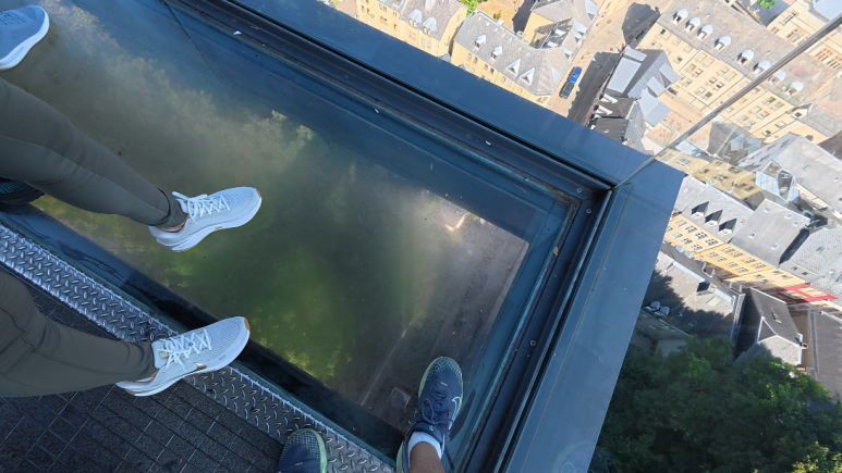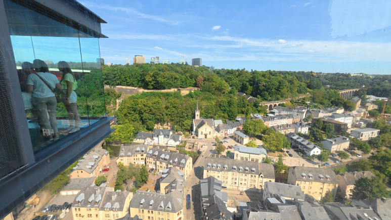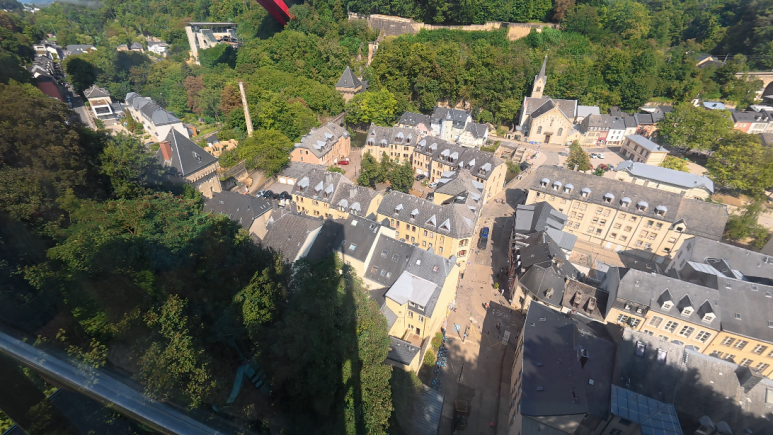 룩셈부르크 시내는 그리 크지 않습니다. 주변 주거 지역들까지 다 합치 면야 크긴 하겠지만 여행객들이 다니는 중심가는 걸어서 금세 둘러볼 수 있지요. 룩셈부르크 시내의 큰 특징으로는 이 도심이 절벽 위에 들어서 있다는 것입니다. 예전에는 외적의 침입을 막기 위해 이런 곳에 도시를 지었었겠지요. 이 절벽 위쪽뿐만 아니라 아래쪽에도 마을이 있습니다. 이 절벽 윗마을과 아랫마을을 연결해 주는 엘리베이터도 갖추고 있어요. 그 엘리베이터 중 하나는 투명한 유리로 바깥을 볼 수 있게 되어 있어 룩셈부르크 아랫마을을 둘러볼 수도 있게 되어있어 관광객들에게 인기가 많습니다.