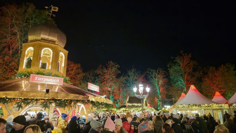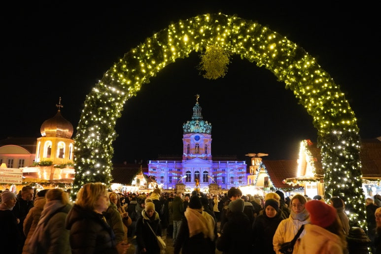 옛날 프로이센의 왕비 소피 샤를로테(Sophie Charlotte)가 머물던 그 궁전 앞에서, 베를린에서 가장 로맨틱한 크리스마스 마켓이 열립니다. 화려한 조명으로 빛나는 샤를로텐부르크 궁전(Schloss Charlottenburg)을 배경으로, 수많은 전통 목제 부스와 하얀 파고다 천막이 아름답게 늘어서 있습니다.