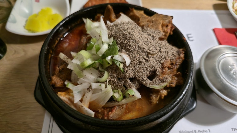 자리에 앉자마자 메뉴판을 정독했습니다. 가장 먼저 눈에 들어온 것은 감자탕이었습니다. 보통 유럽 한식당에서 감자탕은 2인 이상 전골로 파는 경우가 많은데, 이곳은 1인 뚝배기 메뉴가 있어 혼자 오신 분들도 부담 없이 즐길 수 있겠더군요.
