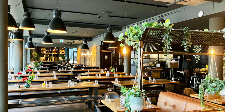 저는 여유롭게 식사하고 싶어서 2층에 자리를 잡았습니다. 창밖으로 베를린의 도심 뷰를 즐길 수 있는 것도 이곳의 장점이에요.