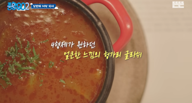 풍향고 멤버들이 부다페스트에서 가장 먼저 찾았을 법한 메뉴! 소고기와 감자, 채소를 넣고 파프리카 가루로 맛을 낸 이 스튜는 육개장이나 매운 소고기국과 묘하게 닮아 있어요.