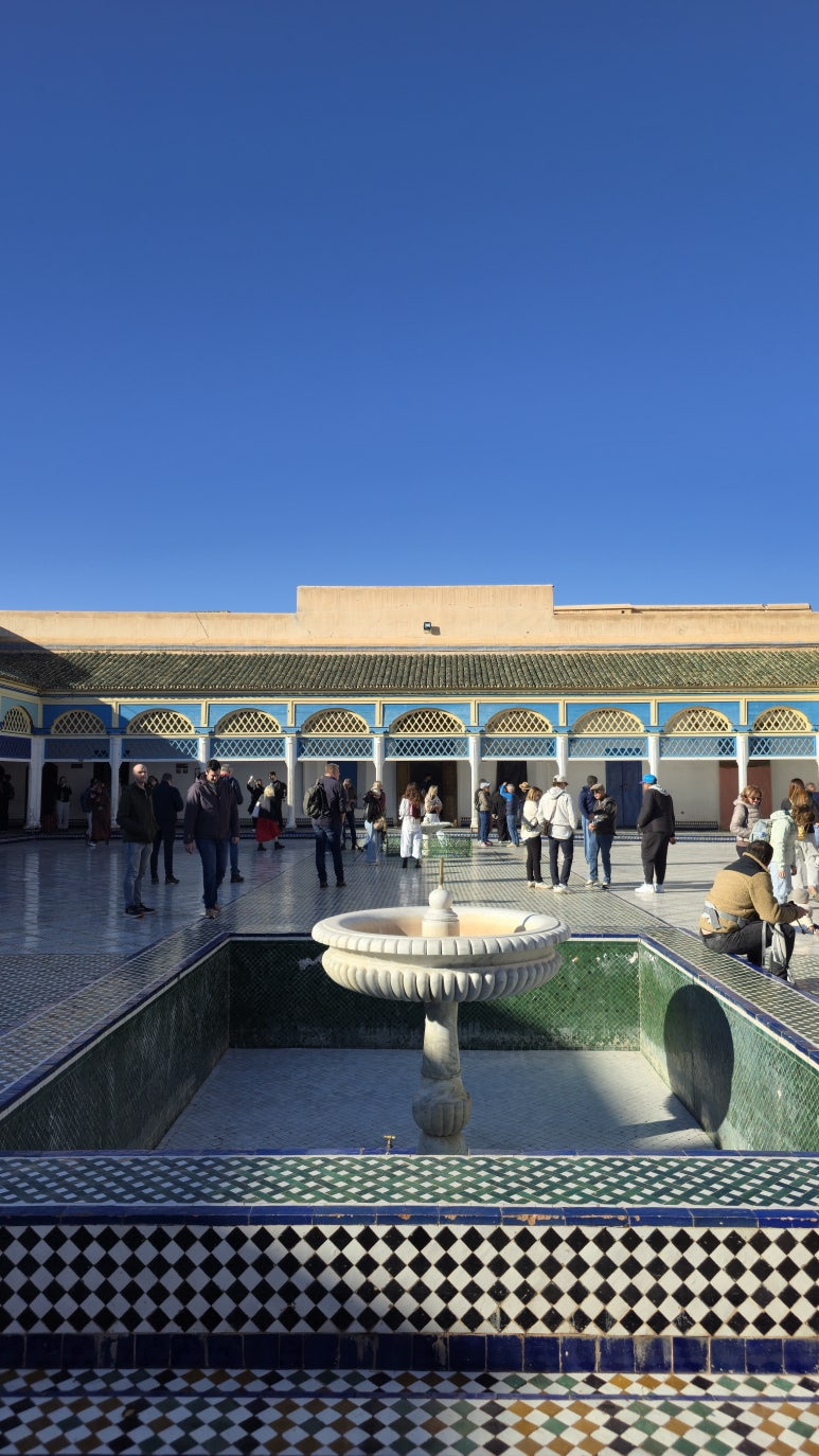 특히 오렌지 나무와 바나나 잎이 무성하게 자라 있는 중정(Riad)과 분수대는 잠시 앉아 쉬어가기 완벽한 장소였어요. 따사로운 햇살을 받으며 이슬람 건축 특유의 대칭미를 감상하는 시간은 이번 여행의 힐링 포인트 중 하나였습니다.