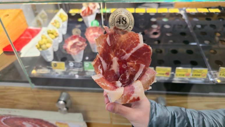 - 장점: 레스토랑에 앉아 정식으로 주문하기 부담스러울 때, 단돈 몇 유로로 길거리에서 간편하게 하몽을 즐길 수 있다는 점이 정말 좋더라고요.